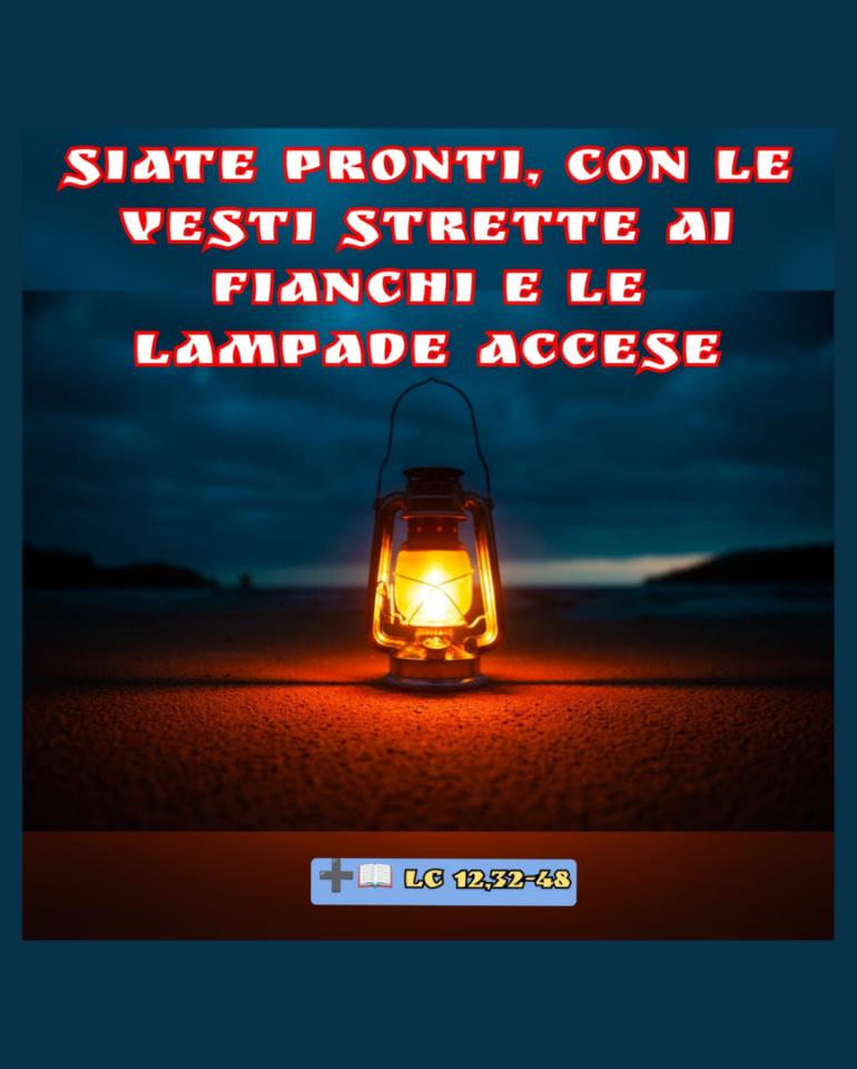 Il versetto 35 è rivolto ai discepoli, ed applica a loro la prima parabola che li paragona ai servi che attendono il ritorno del padrone nella notte. Essi devono restare in tenuta da lavoro, con le falde dell’abito alzate e fermate dalla cintura, con le lucerne accesa, poiché il padrone tornerà in un’ora che non è possibile prevedere. E i servi devono essere preparati ad accoglierlo. E’ evidente il senso che Luca dà a questa parabola. Egli scrive il suo vangelo quando Gesù è già scomparso nella gloria della Pasqua e i discepoli attendono il suo ritorno, ma ne ignorano il giorno e l’ora. Devono perciò restare sempre pronti ad accogliere il Figlio dell’uomo e la sua grazia.